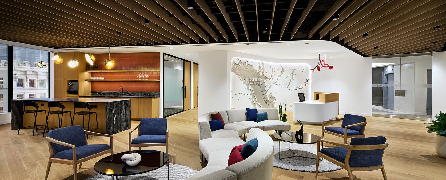 The furniture package, incorporated high-performance products from leading manufacturers including Allsteel, Humanscale, and SitOnIt. Each selection was made with comfort, aesthetics, and long-term functionality in mind—helping Cushman & Wakefield create a welcoming, future-ready environment for both staff and clients.